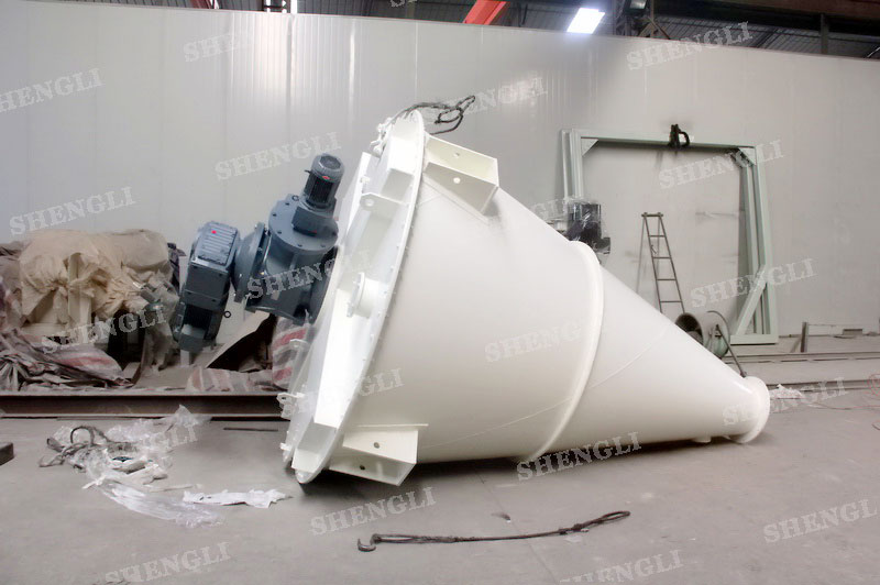 描述:錐形混合設(shè)備內(nèi)部安裝非對(duì)稱傾斜螺旋,雙螺旋自身旋轉(zhuǎn),提升物料,并有公轉(zhuǎn)減速箱驅(qū)動(dòng),沿錐體中心軸公轉(zhuǎn),360度攪拌物料,擁有非破壞性攪拌以及快速且無(wú)殘留卸料的特點(diǎn)。該設(shè)備配置高端SEW品牌減速機(jī),設(shè)備公轉(zhuǎn)、自轉(zhuǎn)驅(qū)動(dòng)分離、內(nèi)設(shè)中心軸線噴液噴頭、內(nèi)外表面做防銹處理,架設(shè)人孔、排氣口等設(shè)置。