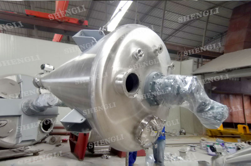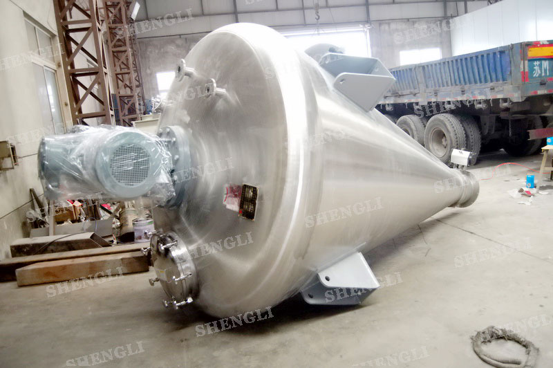描述:錐形雙螺旋混合機內部安裝非對稱傾斜螺旋,雙螺旋自身旋轉,提升物料,并有公轉減速箱驅動,沿錐體中心軸公轉,360度攪拌物料,擁有非破壞性攪拌以及快速且無殘留卸料的特點。該設備采用上蓋一體式,選用耐壓橢圓封頭結構、配置氣動球面閥,錐形中心軸噴液,內表面做鏡面處理、外表面亞光處理,架設人孔、觀察口、排氣口等設置。