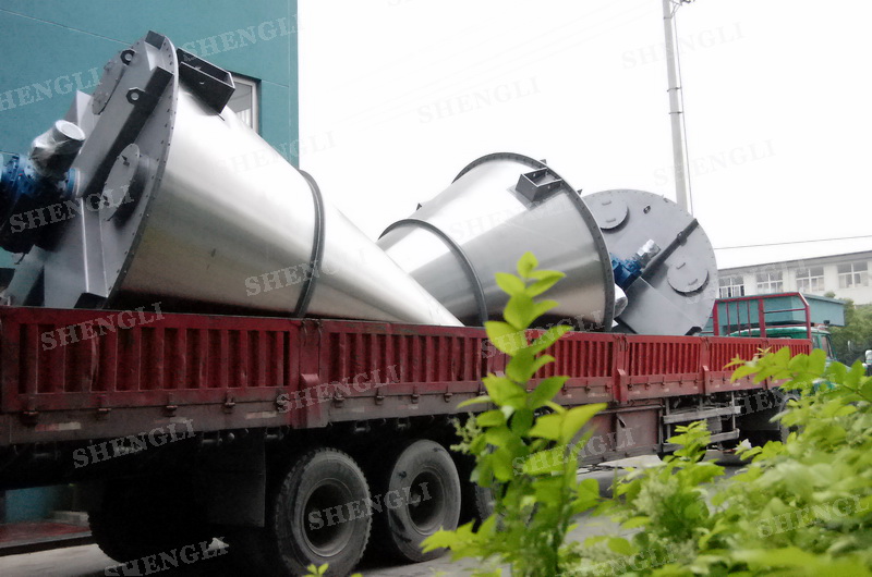 描述:錐形攪拌設(shè)備內(nèi)部安裝非對稱傾斜螺旋,雙螺旋自身旋轉(zhuǎn),提升物料,并有公轉(zhuǎn)減速箱驅(qū)動,沿錐體中心軸公轉(zhuǎn),364度攪拌物料,擁有非破壞性攪拌以及快速且無殘留卸料的特點。該設(shè)備配置自轉(zhuǎn)、公轉(zhuǎn)分體驅(qū)動,內(nèi)外表面做拉絲處理,配置錐體中軸線噴液噴頭,筒體底部配置氣動球面閥,開設(shè)投料口、排氣口等。