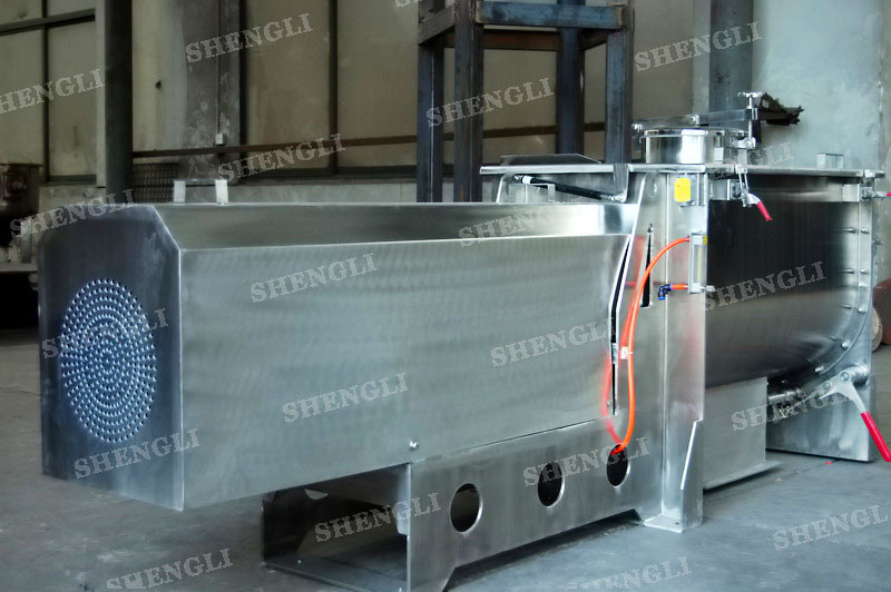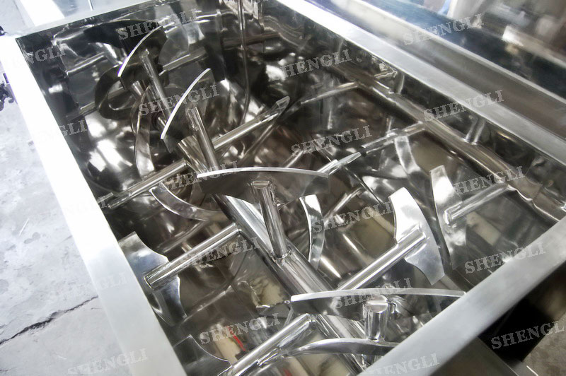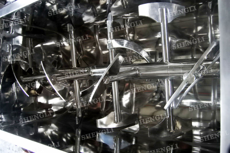 工作原理:槳葉式混合機采用U型筒體,內設平行主軸,主軸上安裝若干傾角式槳葉刀,不僅能快速高效的攪拌物料,且不會破壞物料,不會卡料。