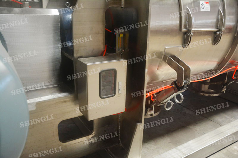 設備配置:配置K系列減速機,直角安裝;搭載四臺3000轉每分鐘的高速飛刀;筒體整體精加工;筒側開設快開式檢修門附安全開關;出料口采用氣動翻板閥;主軸與飛刀主軸采用氣密封;設備內表面鏡面拋光、外表面拋光。