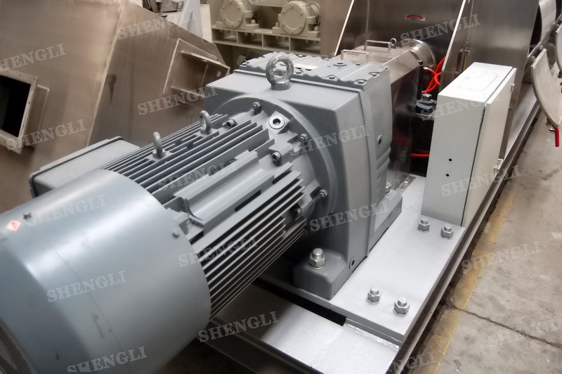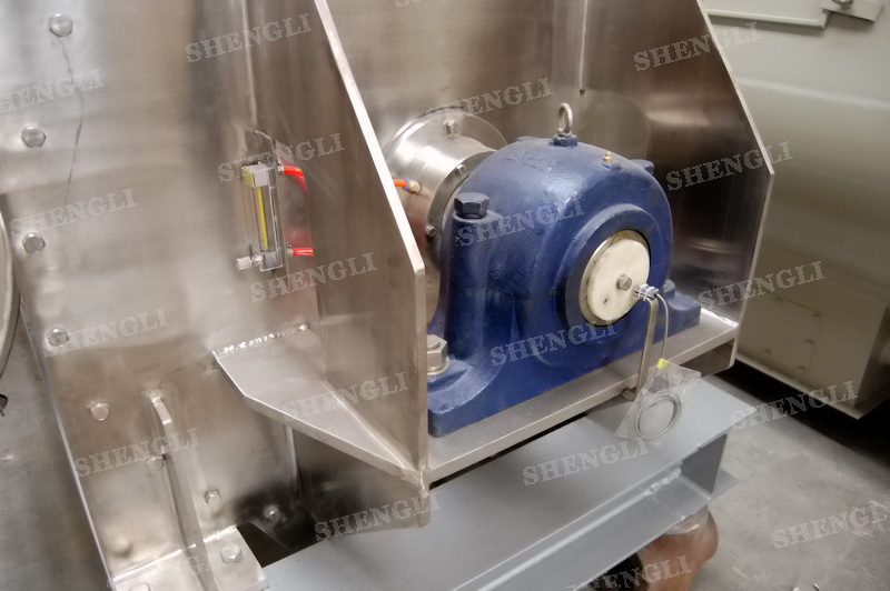 設備配置:配置SEW品牌R系列減速機,平行安裝;筒側開設快開式檢修門附安全開關;出料口采用氣動翻板閥;筒體上設置噴液噴頭;設備主軸采用氣密封;設備內、外表面拉絲亞光。