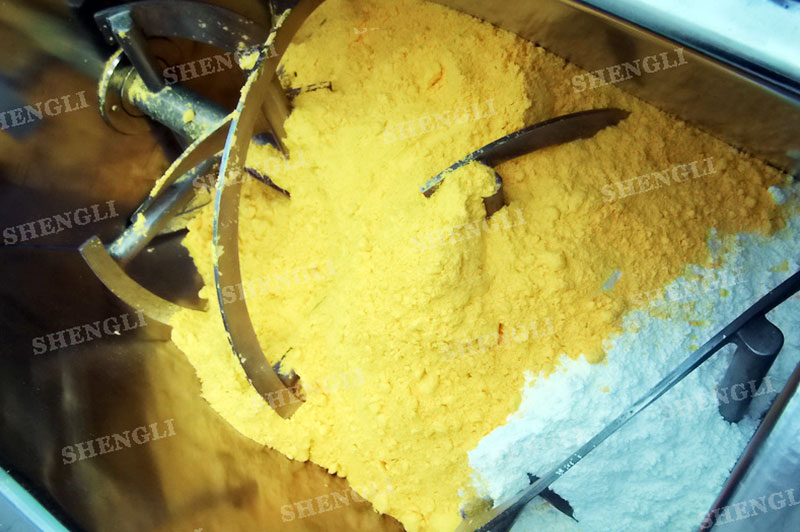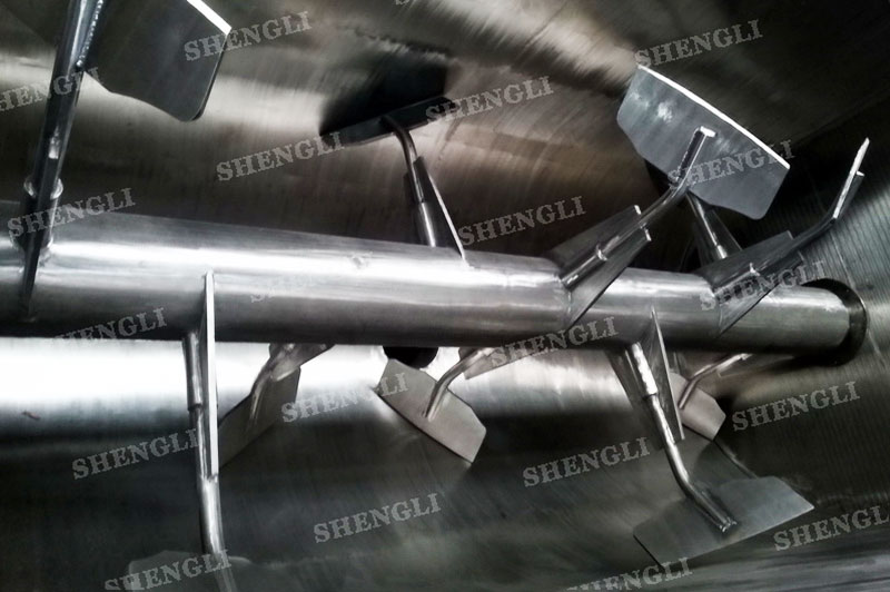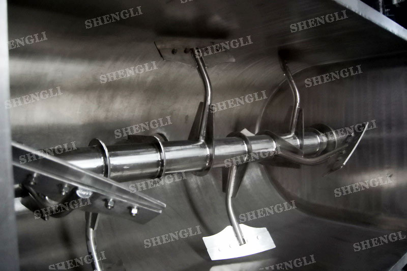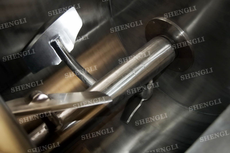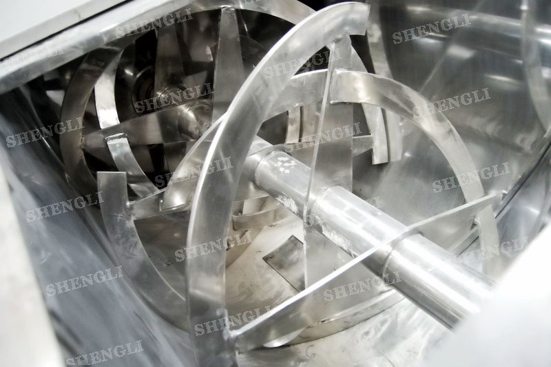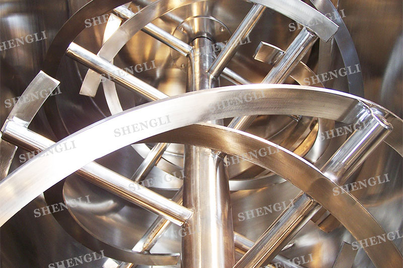 工作原理:螺帶混合機采用U型筒體,內裝平行主軸,主軸上安裝正反雙向的盤條螺帶,不同維度螺帶分內螺帶與外螺帶,物料在螺帶的驅使下反復參混,能夠快速高效的混合。