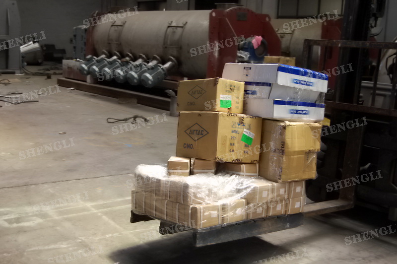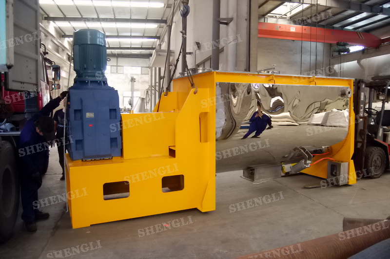 工作原理:螺帶臥式攪拌機采用U型筒體,內裝平行主軸,主軸上安裝正反雙向的盤條螺帶,不同維度螺帶分內螺帶與外螺帶,物料在螺帶的驅使下反復參混,能夠快速高效的混合。