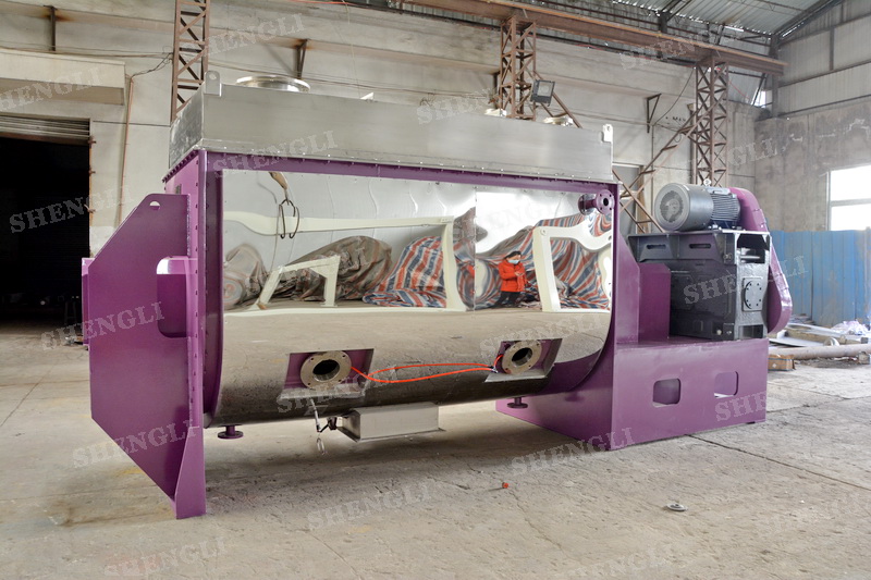 工作原理:螺帶臥式攪拌機(jī)采用U型筒體,內(nèi)裝平行主軸,主軸上安裝正反雙向的盤條螺帶,不同維度螺帶分內(nèi)螺帶與外螺帶,物料在螺帶的驅(qū)使下反復(fù)參混,能夠快速高效的混合。
