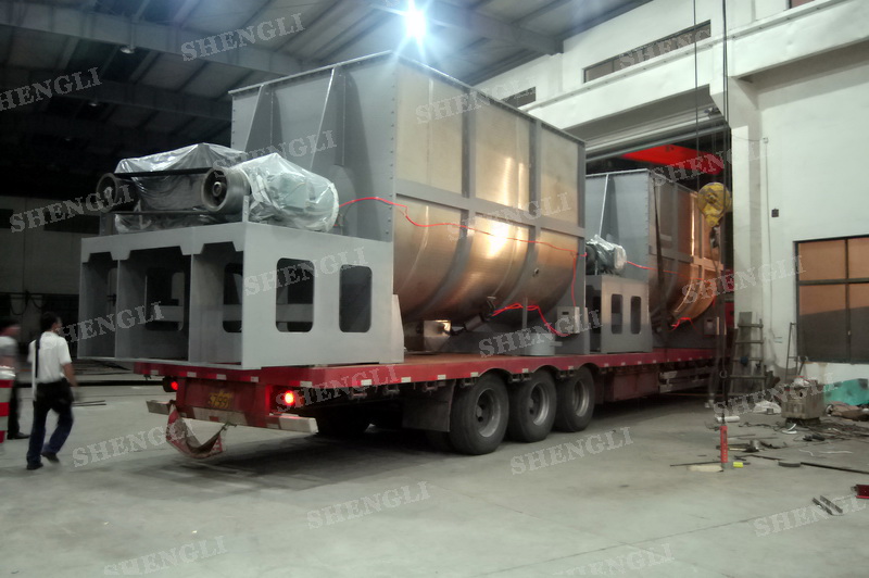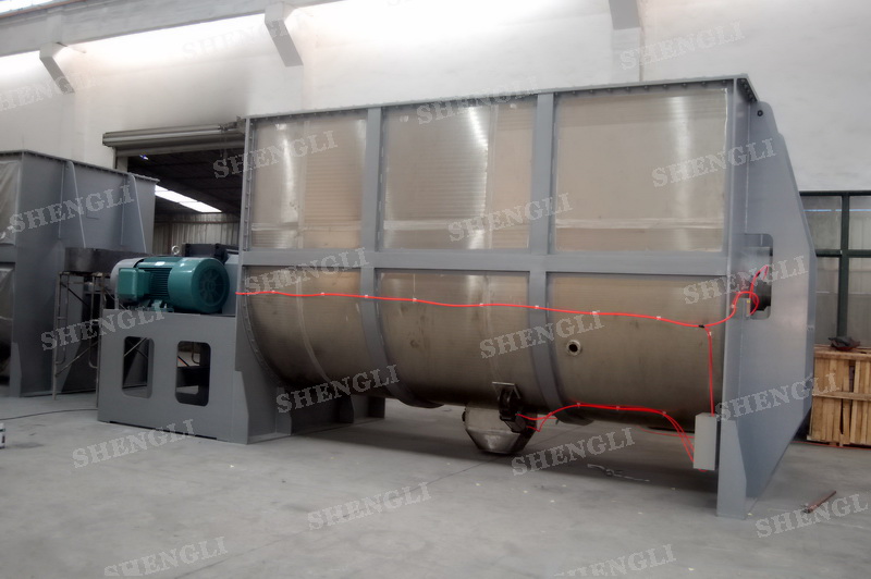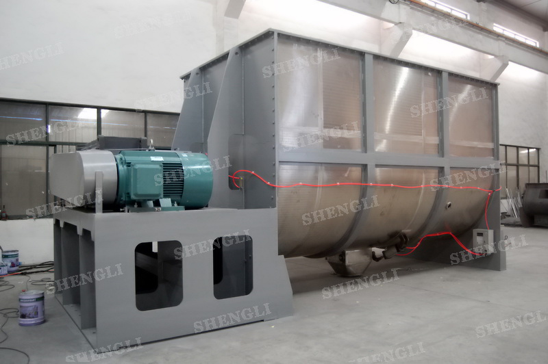 工作原理:螺帶混合設備采用U型筒體,內裝平行主軸,主軸上安裝正反雙向的盤條螺帶,不同維度螺帶分內螺帶與外螺帶,物料在螺帶的驅使下反復參混,能夠快速高效的混合。