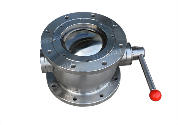 新型的球面結構閥門,應用于各行業的粉體、顆粒領域,可裝配在料倉、混合機、輸送機、振動篩等粉體設備下。 其結構特點是在有限的結構空間里,擁有較大化的通口口徑,可實現粉體或顆粒的快速放料,閥門打開時,旋轉讓位的球面以及支撐結構可隱蔽于閥體內腔,錯開物料的放料軌跡,不阻礙放料,無放料死角。