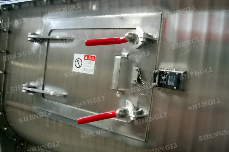 設備配置:設備搭載雙驅動同步齒輪減速機;筒蓋法蘭式并開設若干入料口;設備主軸采用氣密封;筒側雙向開設檢修門;筒體底部配置氣動翻板閥;