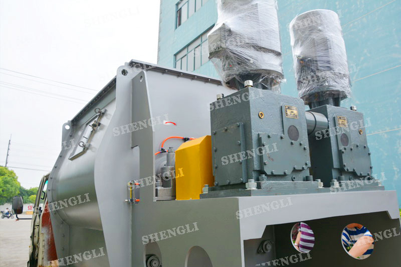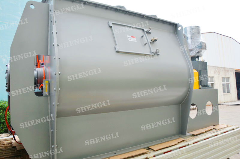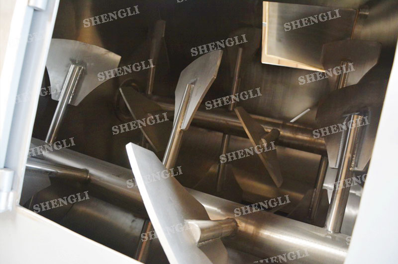 工作原理:臥式干粉攪拌機采用雙U型筒體,內裝平行的雙主軸,主軸設有對稱的多組槳葉,其雙軸的運行軌跡部分重合形成嚙合空間,雙軸在受雙電機同步驅動,同步的對稱向外翻攪物料,致使物料能夠達到瞬間失重點,該設備具備高效物料無差別的混合能力。